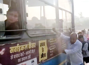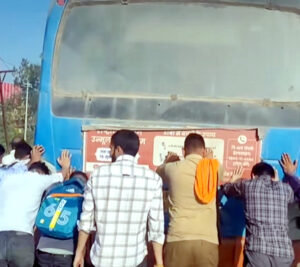 HRTC की बस बीच रास्ते। Photo साभार : दैनिक जागरण