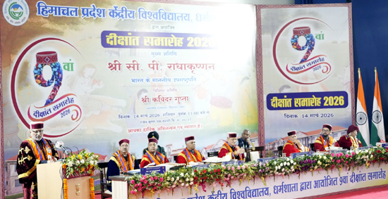 उपराष्ट्रपति सी.पी. राधाकृष्णन ने आज शनिवार को धर्मशाला में हिमाचल प्रदेश केंद्रीय विश्वविद्यालय के 9वें दीक्षांत समारोह में स्वर्ण पदक विजेताओं को सम्मानित किया।