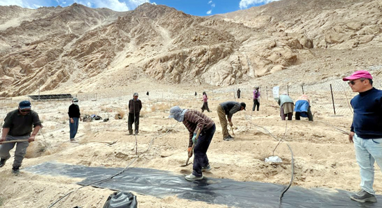 During the field visit, several key activities were carried out to enhance orchard management practices. Demonstrations on intercropping under low tunnel technology were conducted and implemented at the model orchard site to promote efficient utilization of space and resources. Additionally, gap filling of cold resistant apple cultivars was undertaken jointly by the KVK Nyoma team along with the local farmers, ensuring improved orchard productivity and sustainability.